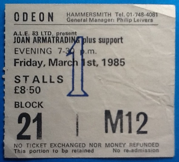 Joan Armatrading Original Used Concert Ticket Hammersmith Odeon London 1985