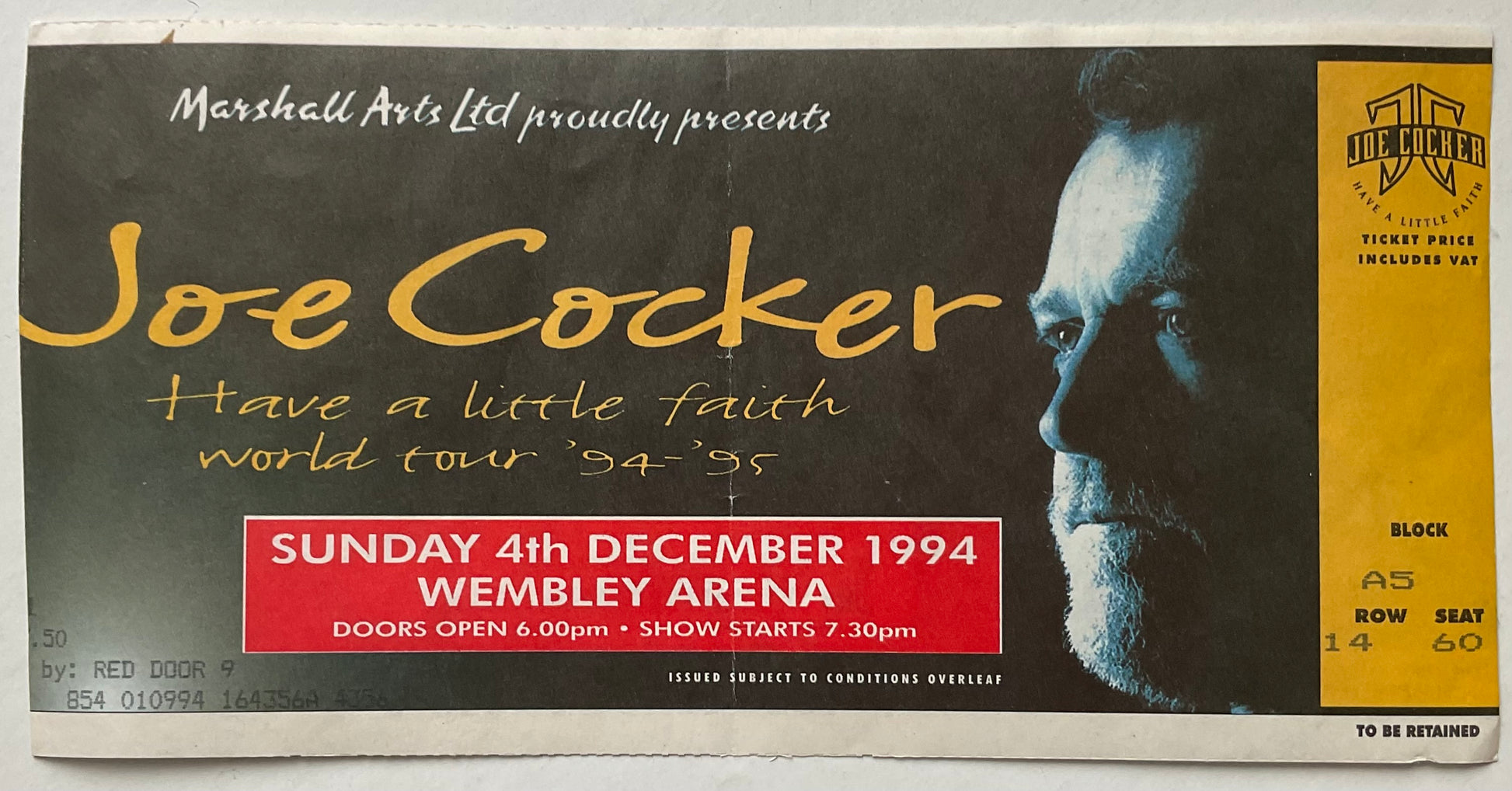 Joe Cocker Original Used Concert Ticket Wembley Arena London 4th Dec 1994