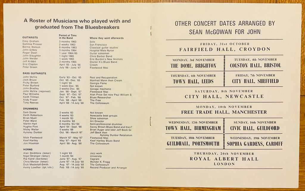 John Mayall Keef Hartley Original Concert Programme UK Tour 1969
