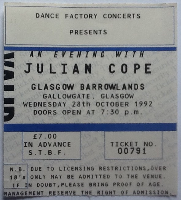 Julian Cope Original Used Concert Ticket Barrowlands Glasgow 1992