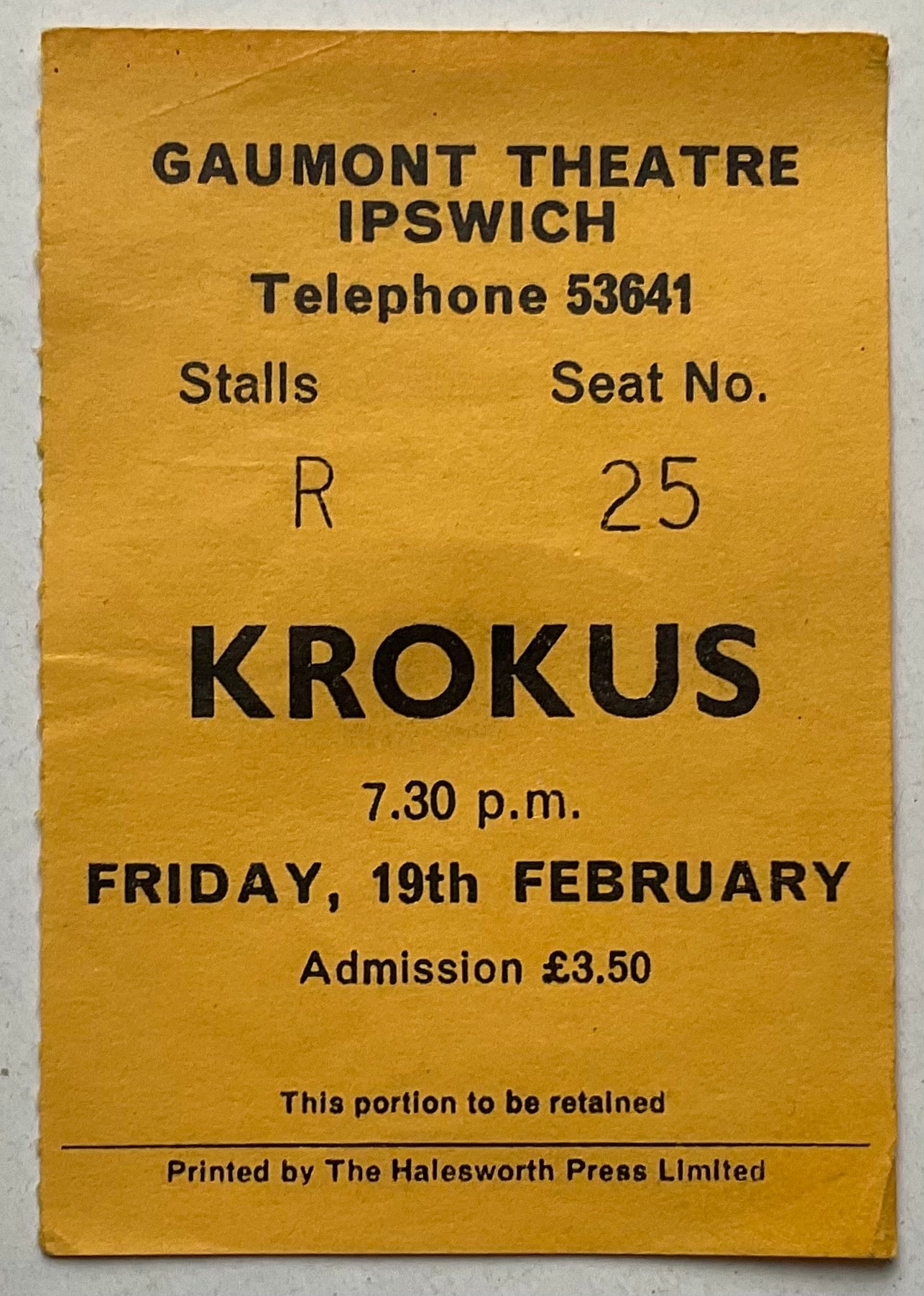 Krokus Original Used Concert Ticket Gaumont Theatre Ipswich 19th Feb 1982