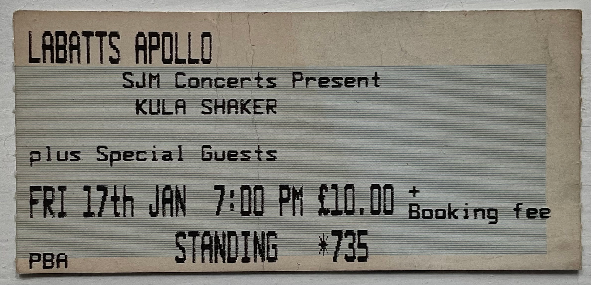 Kula Shaker Original Used Concert Ticket Labatts Apollo Manchester 17th Jan 1997