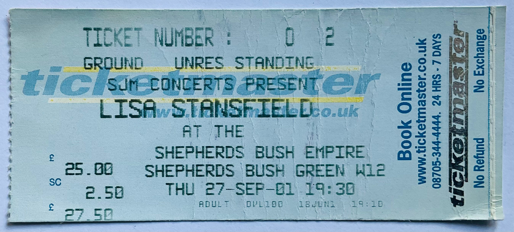 Lisa Stansfield Original Used Concert Ticket Shepherds Bush Empire London 27th Sep 2001