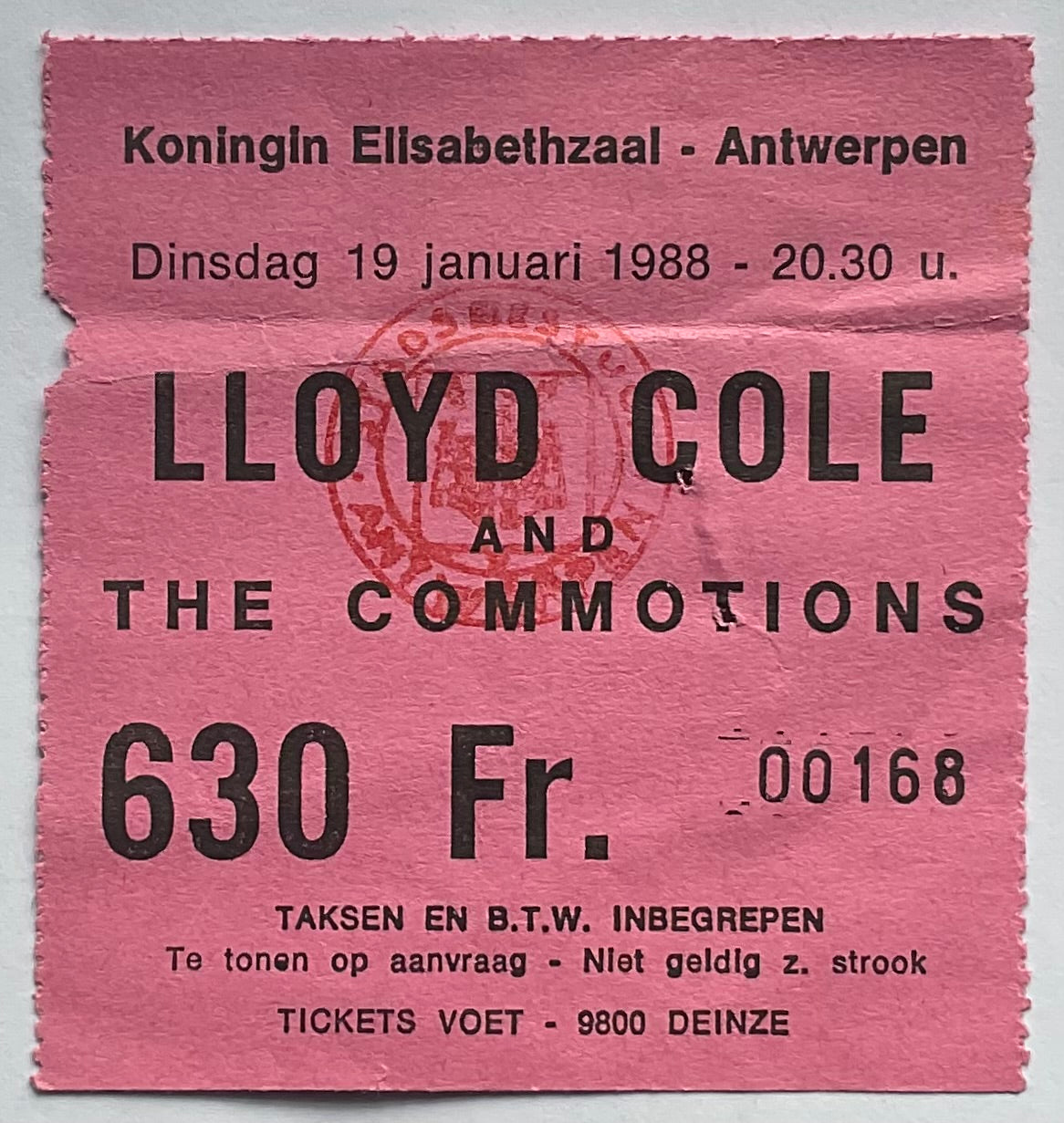 Lloyd Cole & the Commotions Original Used Concert Ticket Koningin Elisabethzaal Antwerp 19th Jan 1988