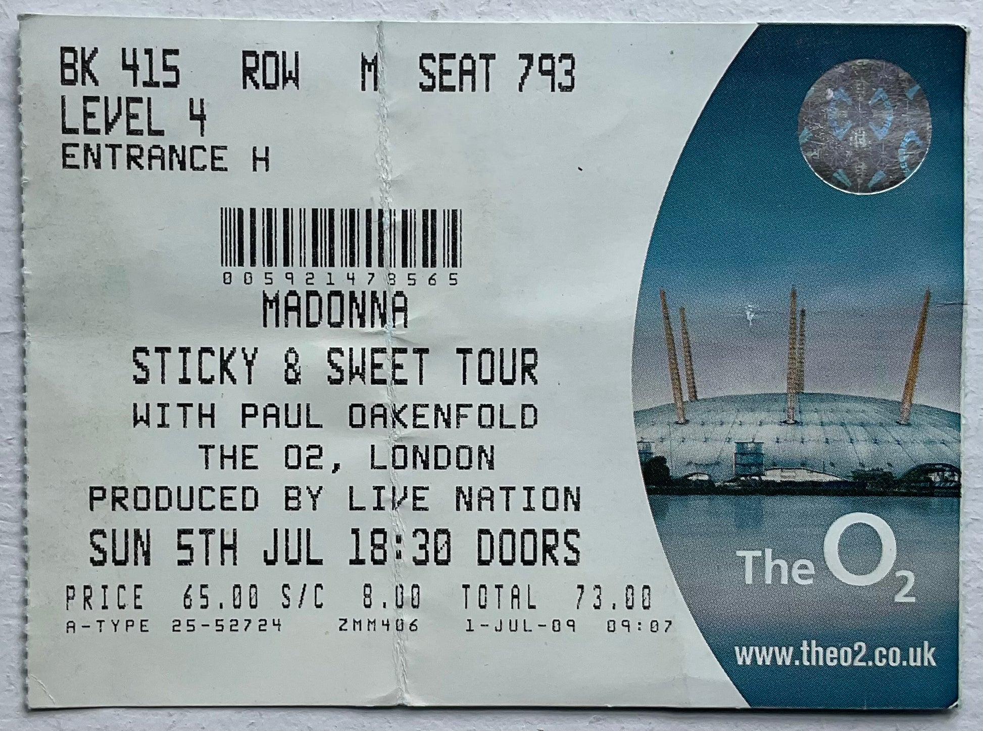 Madonna Original Used Concert Ticket O2 Arena London 5th Jul 2009
