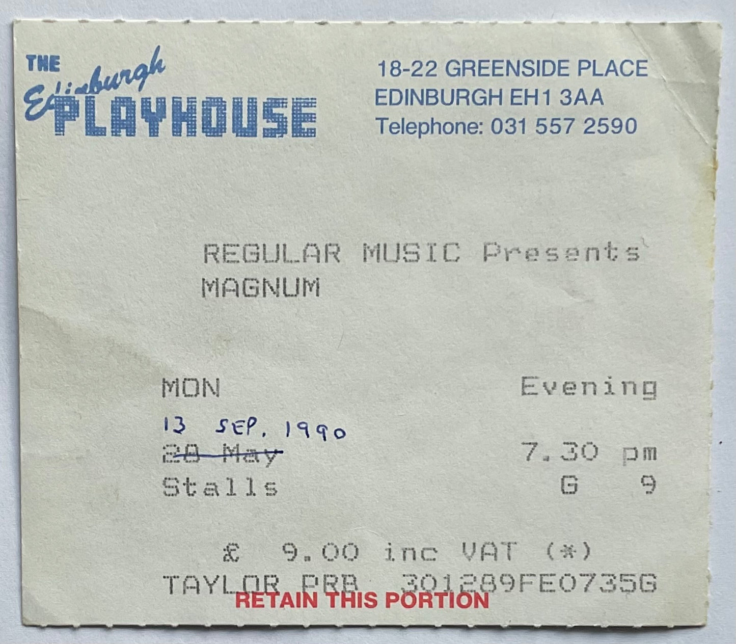 Magnum Original Used Concert Ticket Edinburgh Playhouse 13th Sep 1990