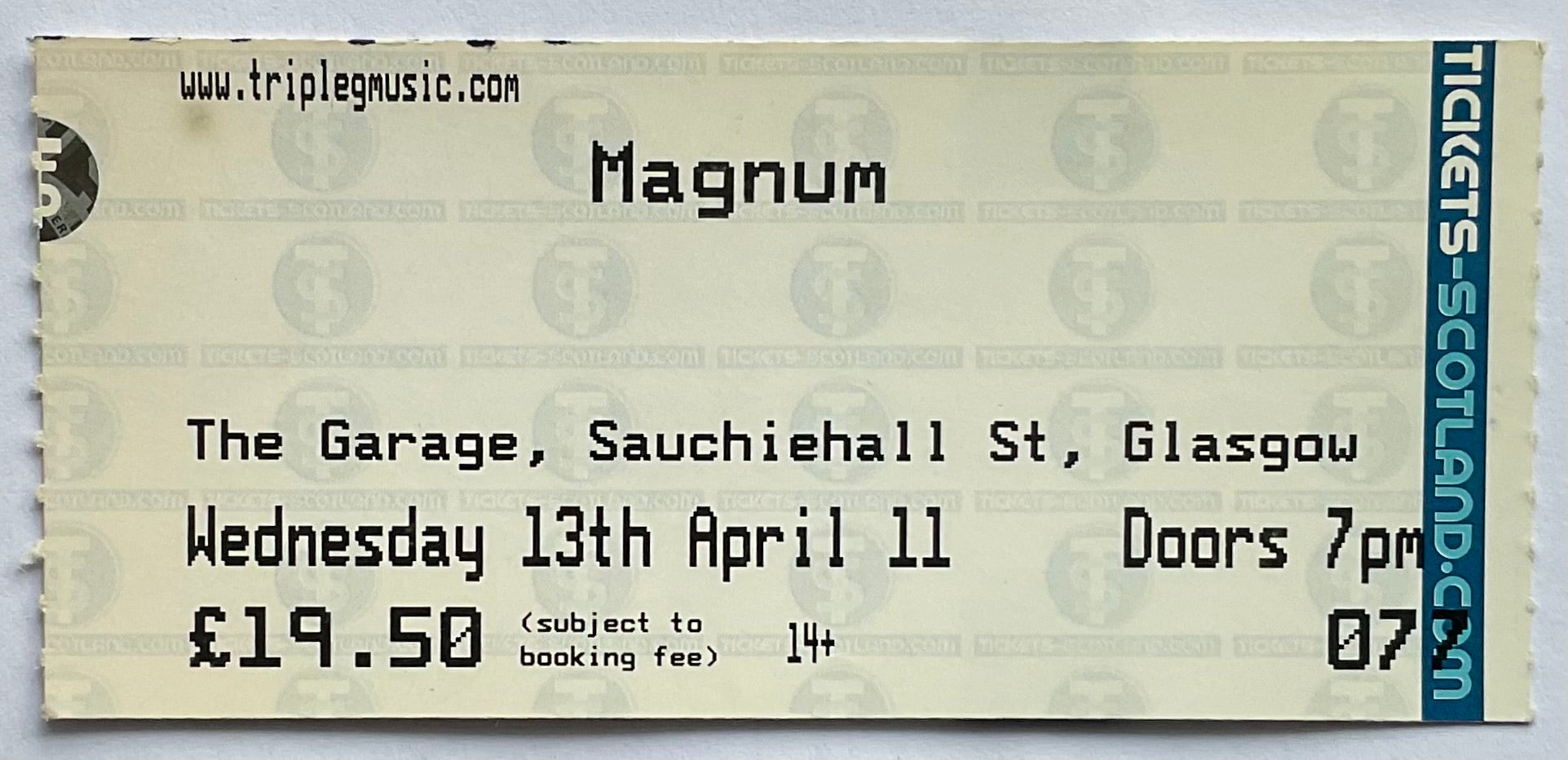 Magnum Original Used Concert Ticket The Garage Glasgow 13th Apr 2011