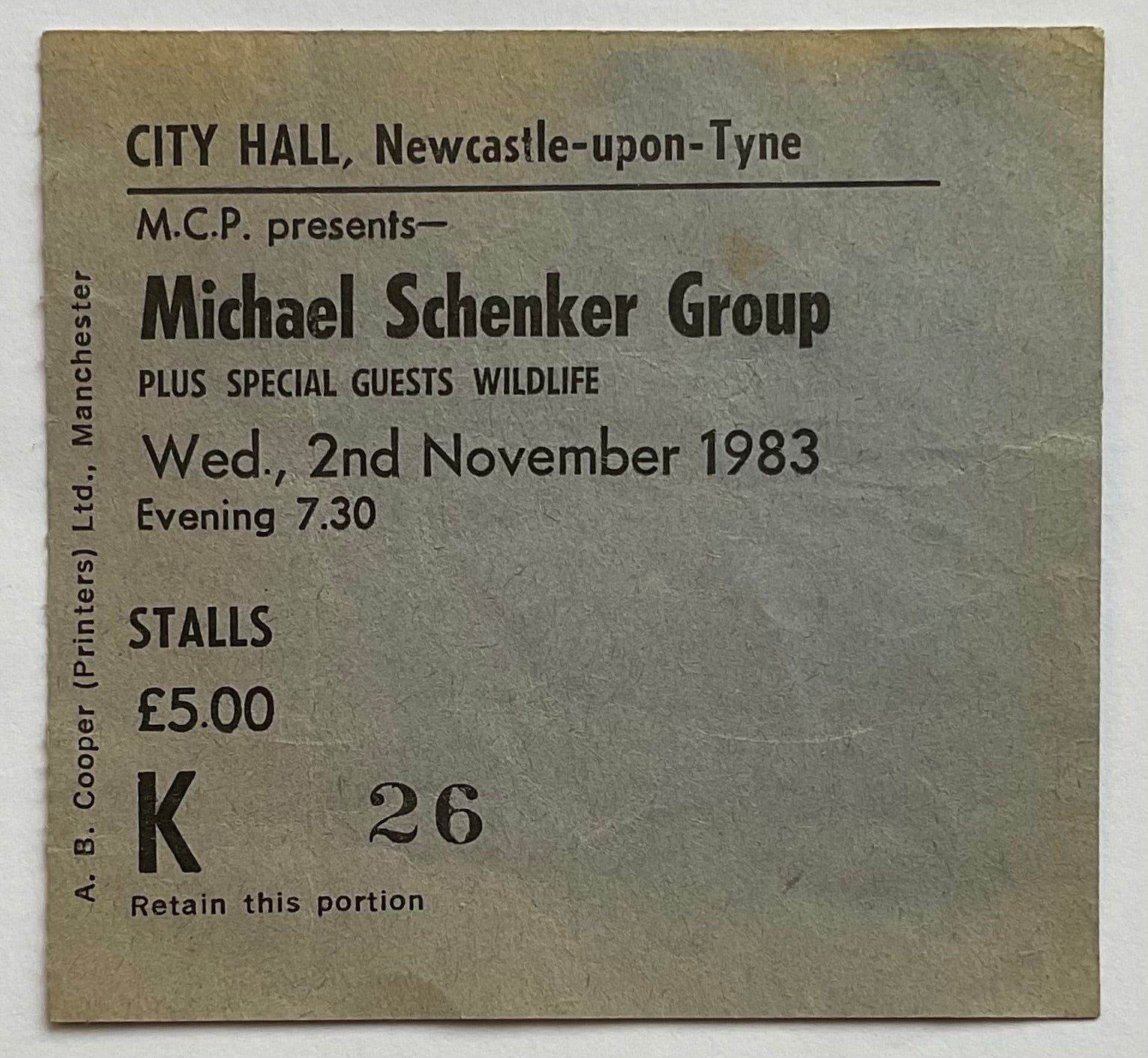 Michael Schenker Group Original Used Concert Ticket City Hall Newcastle 2nd Nov 1983