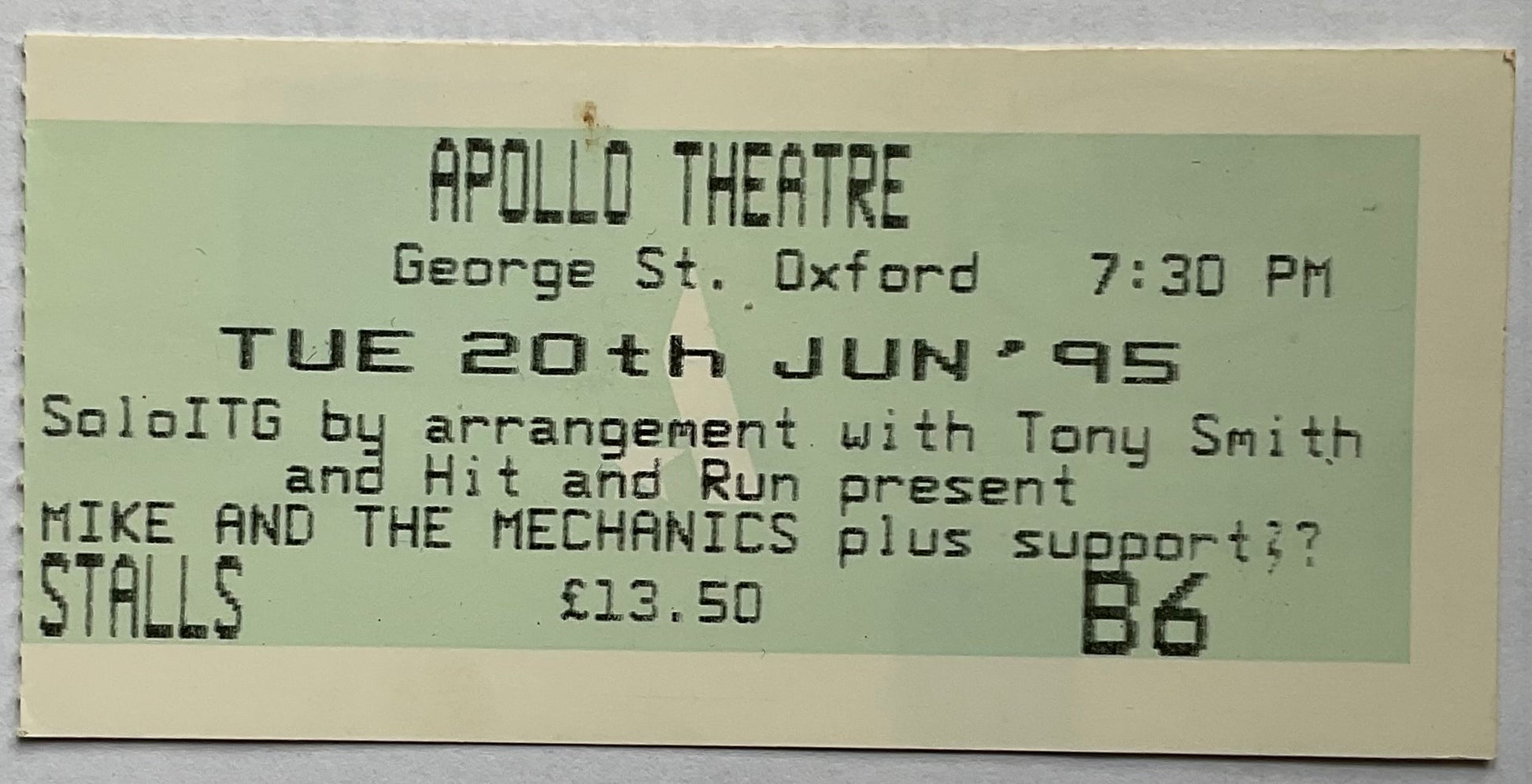 Mike & the Mechanics Original Used Concert Ticket Apollo Theatre Oxford 20th Jul 1995