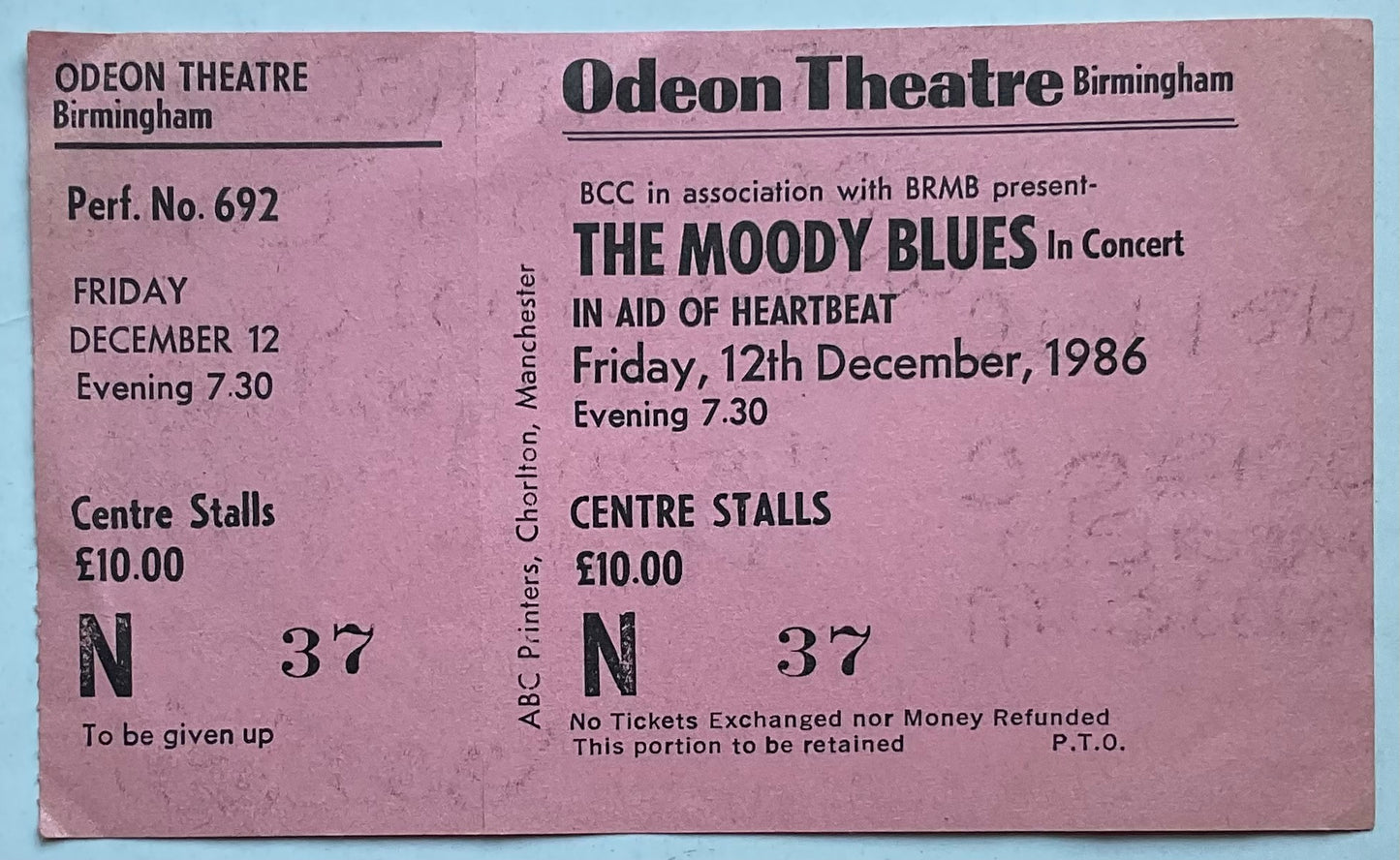 Moody Blues Original Unused Concert Ticket 12th Dec 1986