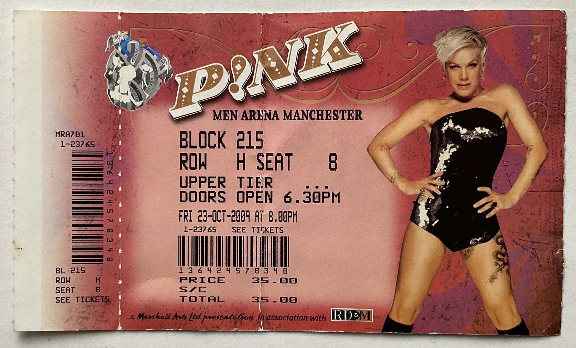 P!nk Pink Original Unused Concert Ticket MEN Arena Manchester 23rd Oct 2009
