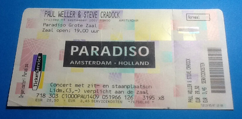 Paul Weller Unused Ticket Amsterdam 2007