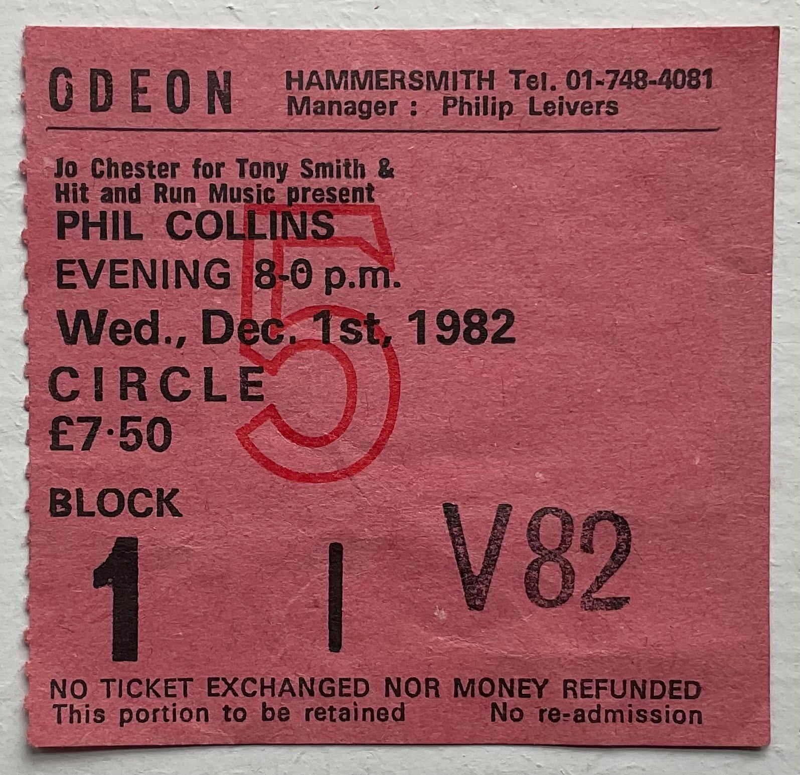 Phil Collins Original Used Concert Ticket Hammersmith Odeon London 1st Dec 1982