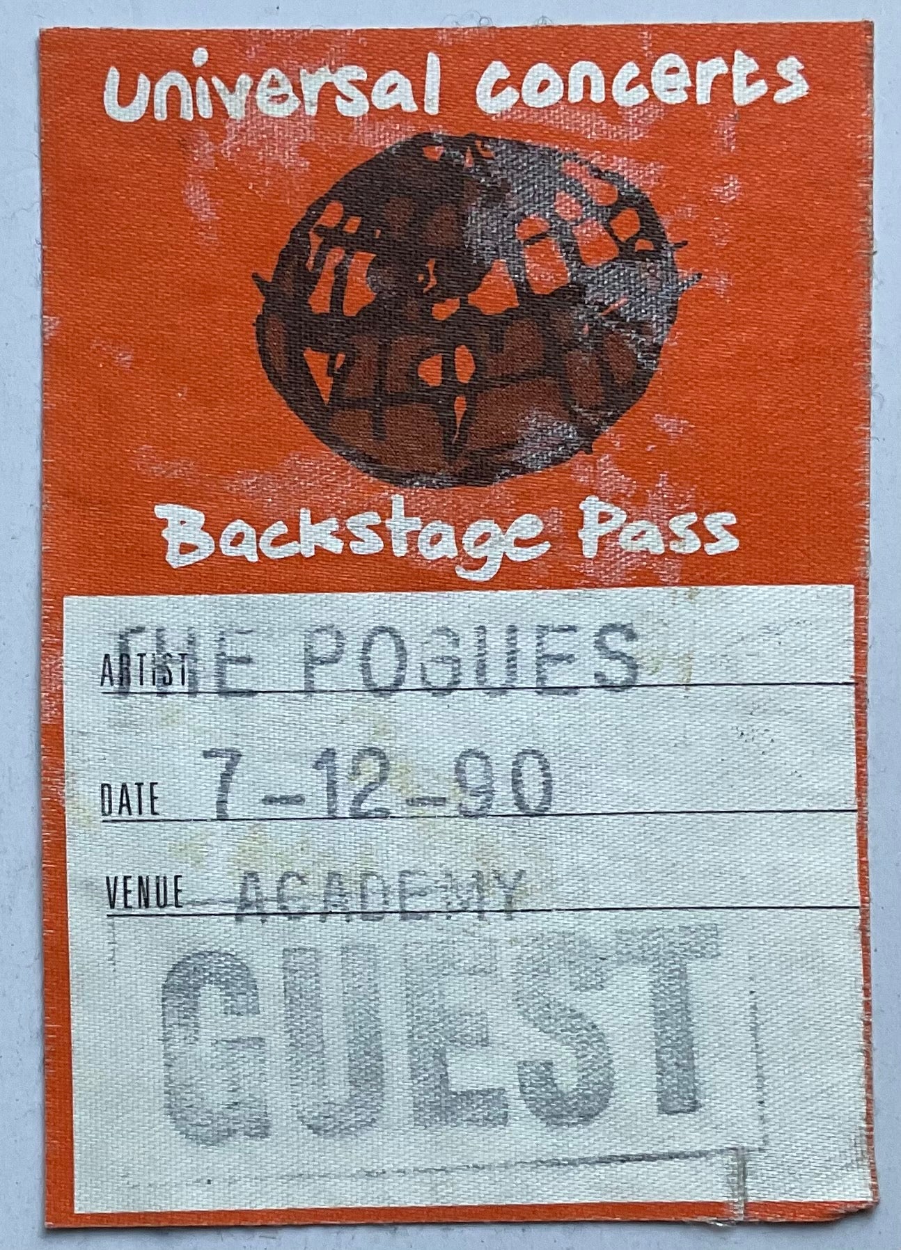 Pogues Original Concert Backstage Pass Ticket Brixton Academy London 7th Dec 1990