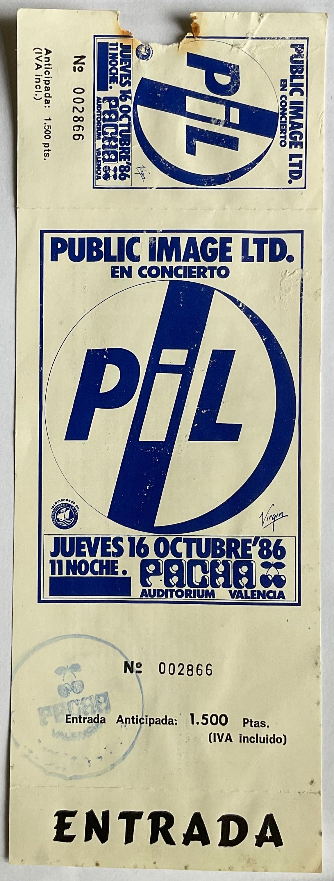 Public Image Limited PiL Original Unused Concert Ticket Pacha Auditorium Valencia 16th Oct 1986
