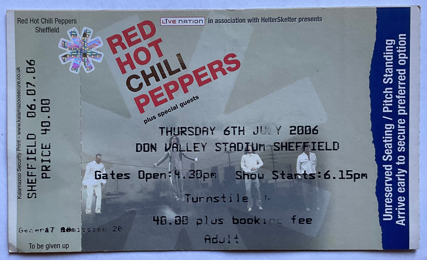 Red Hot Chili Peppers Original Unused Concert Ticket Don Valley Stadium Sheffield 6th Jul 2006