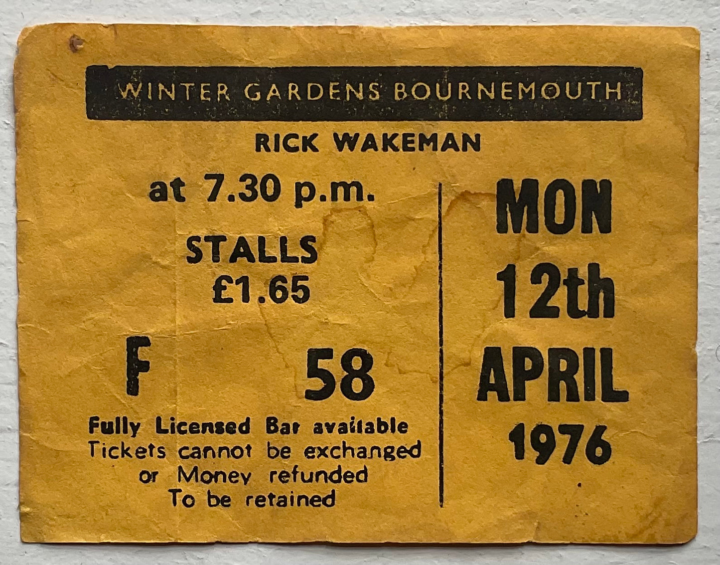 Rick Wakeman Original Used Concert Ticket Winter Gardens Bournemouth 12th Apr 1976