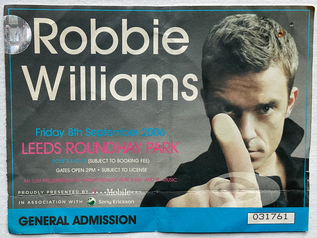 Robbie Williams Original Used Concert Ticket Roundhay Park Leeds 8th Sept 2006