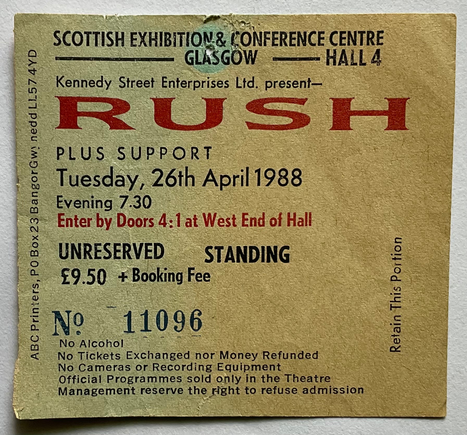 Rush Original Used Concert Ticket SECC Glasgow 26th Apr 1988