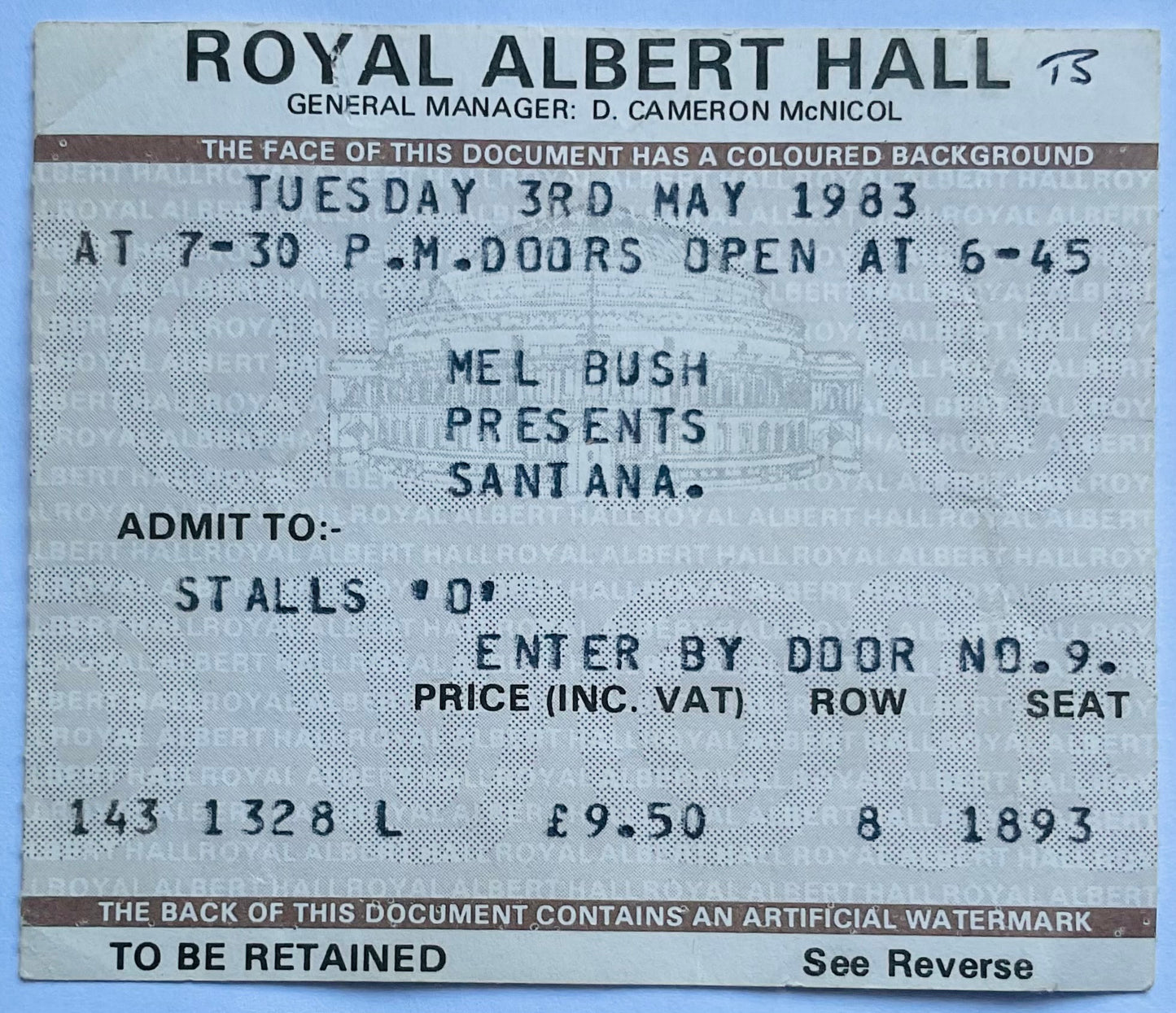 Santana Original Used Concert Ticket Royal Albert Hall London 3rd May 1983