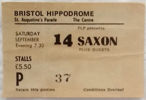 Saxon Original Used Concert Ticket Hippodrome Bristol 1985