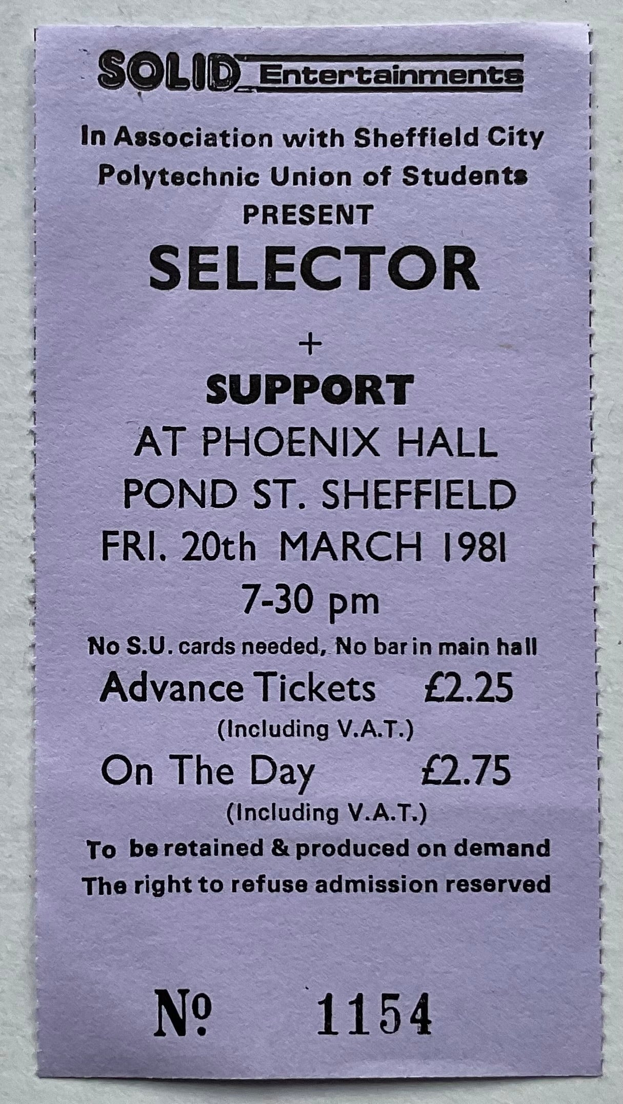 Selecter Original Used Concert Ticket Sheffield City Polytechnic 20th Mar 1981