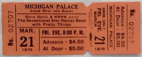 Sensational Alex Harvey Band SAHB Original Unused Concert Ticket Michigan Palace 1975