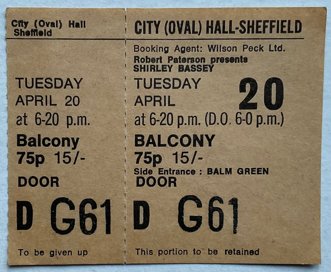 Shirley Bassey Original Unused Concert City Hall Sheffield 20th Apr 1971