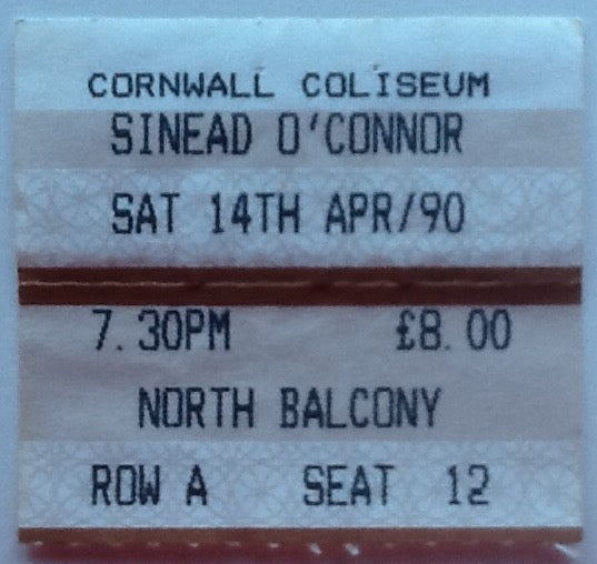 Sinead O'Connor Original Used Concert Ticket Cornwall Coliseum St. Austell 1990