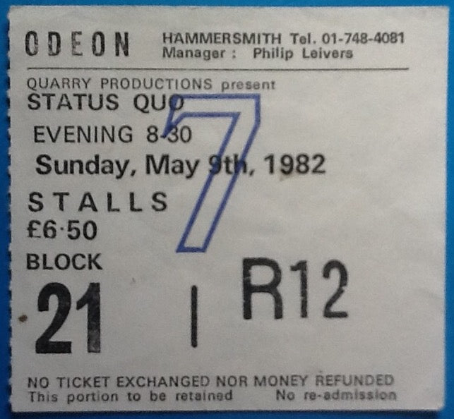 Status Quo Original Used Concert Ticket Hammersmith Odeon London 9th May 1982
