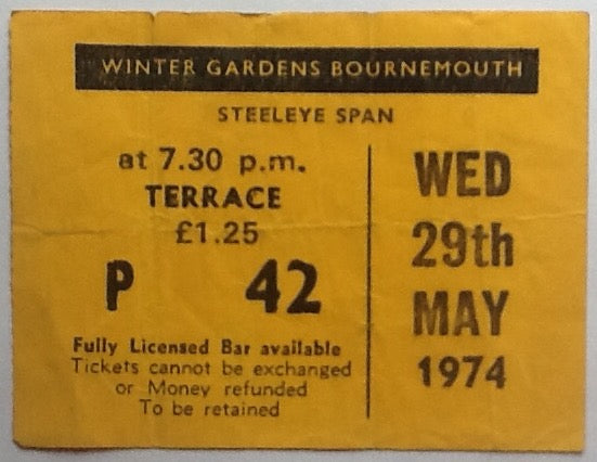 Steeleye Span Original Used Concert Ticket Winter Gardens Bournemouth 1974
