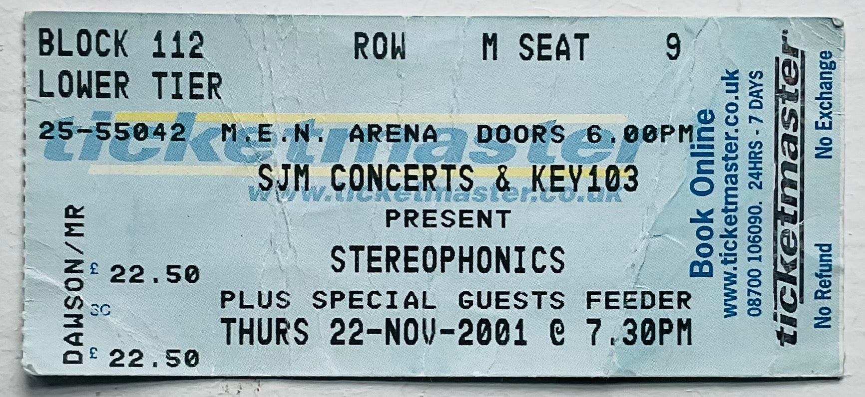 Stereophonics Original Used Concert Ticket MEN Arena Manchester 22nd Nov 2001