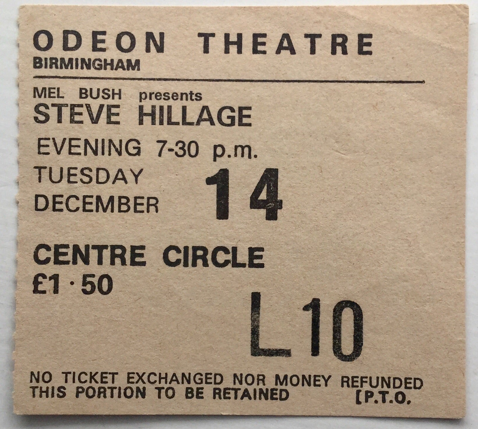 Steve Hillage Original Used Concert Ticket Odeon Theatre Birmingham 14th Dec 1976