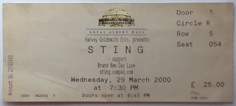 Sting Original Used Concert Ticket Royal Albert Hall London 2000