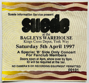 Suede Original Used Concert Ticket Bagleys Warehouse London 5th Apr 1997