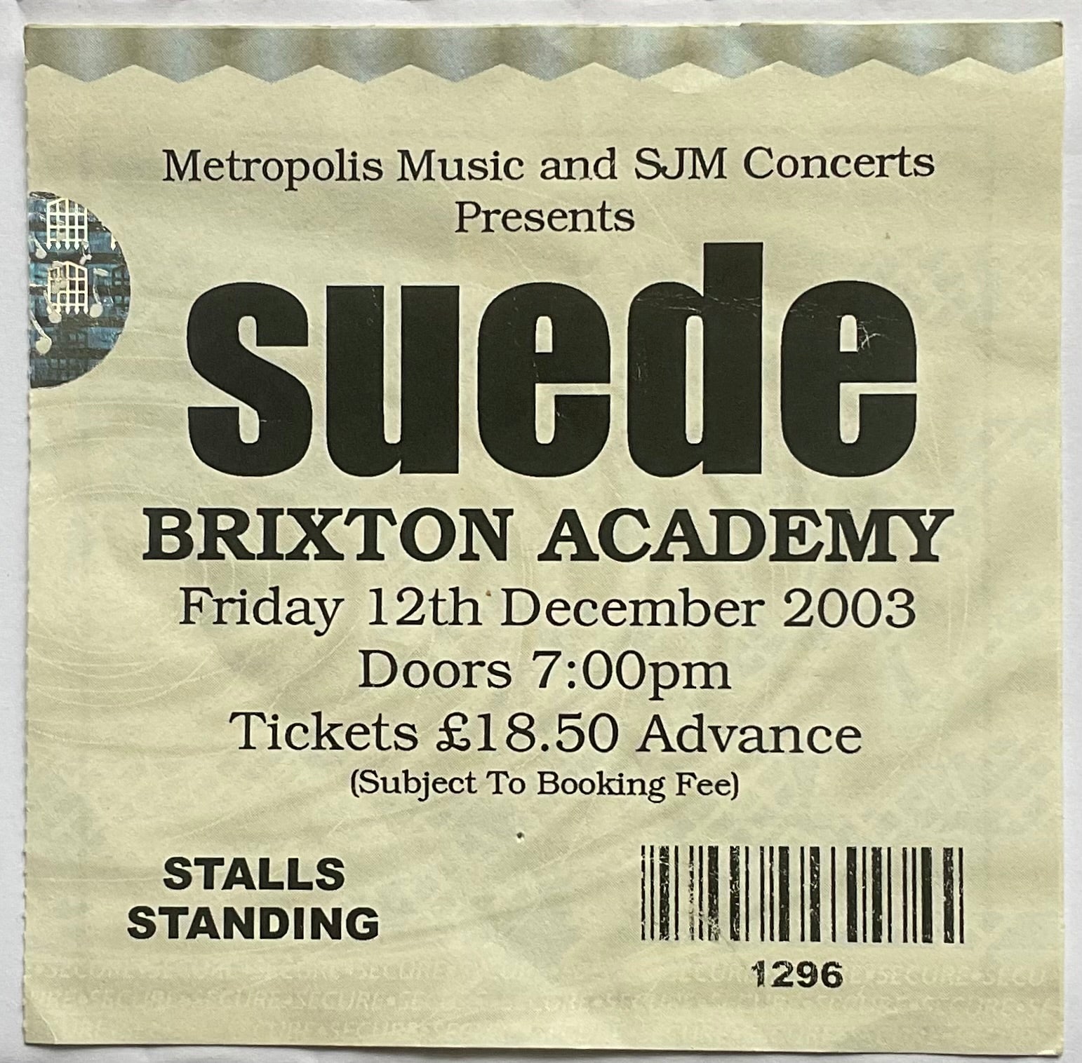 Suede Original Used Concert Ticket Carling Academy Brixton London 12th Dec 2003
