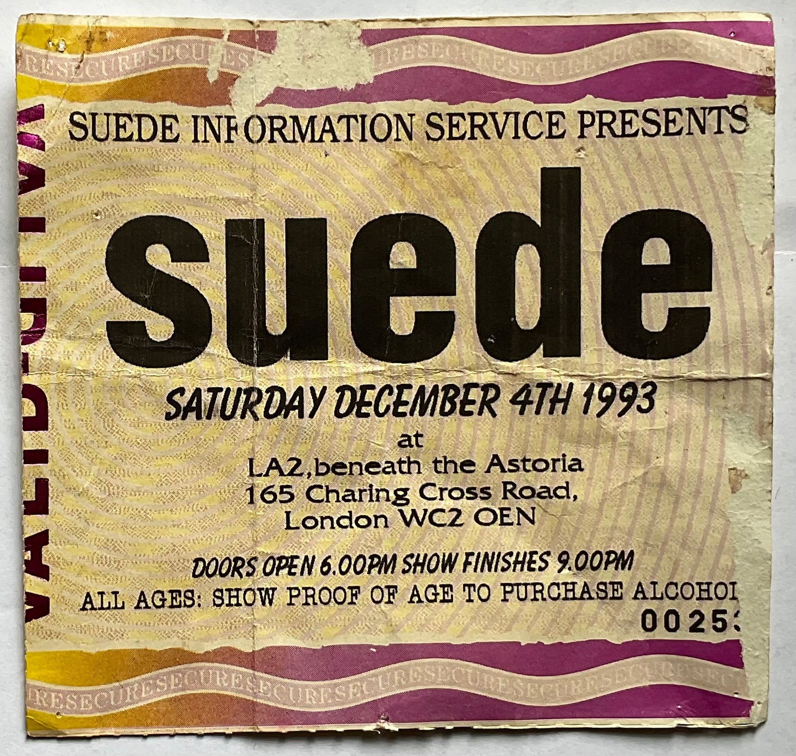 Suede Original Used Concert Ticket LA2 Astoria London 4th Dec 1993