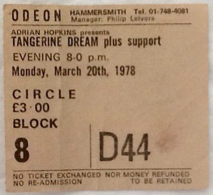 Tangerine Dream Original Used Concert Ticket Hammersmith Odeon London 1978