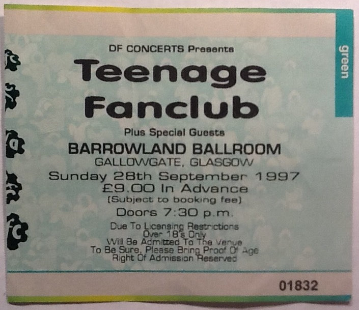 Teenage Fanclub Original Used Concert Ticket Glasgow Barrowland 1997