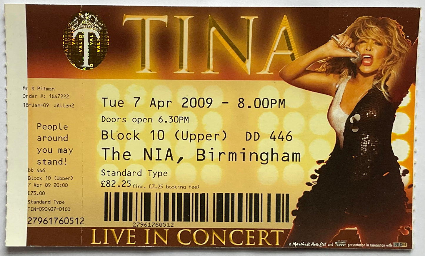 Tina Turner Original Unused Concert Ticket NIA Birmingham 7th Apr 2009