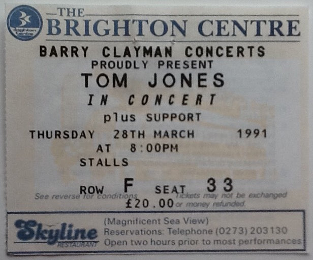 Tom Jones Original Used Concert Ticket Brighton Centre Brighton 1991
