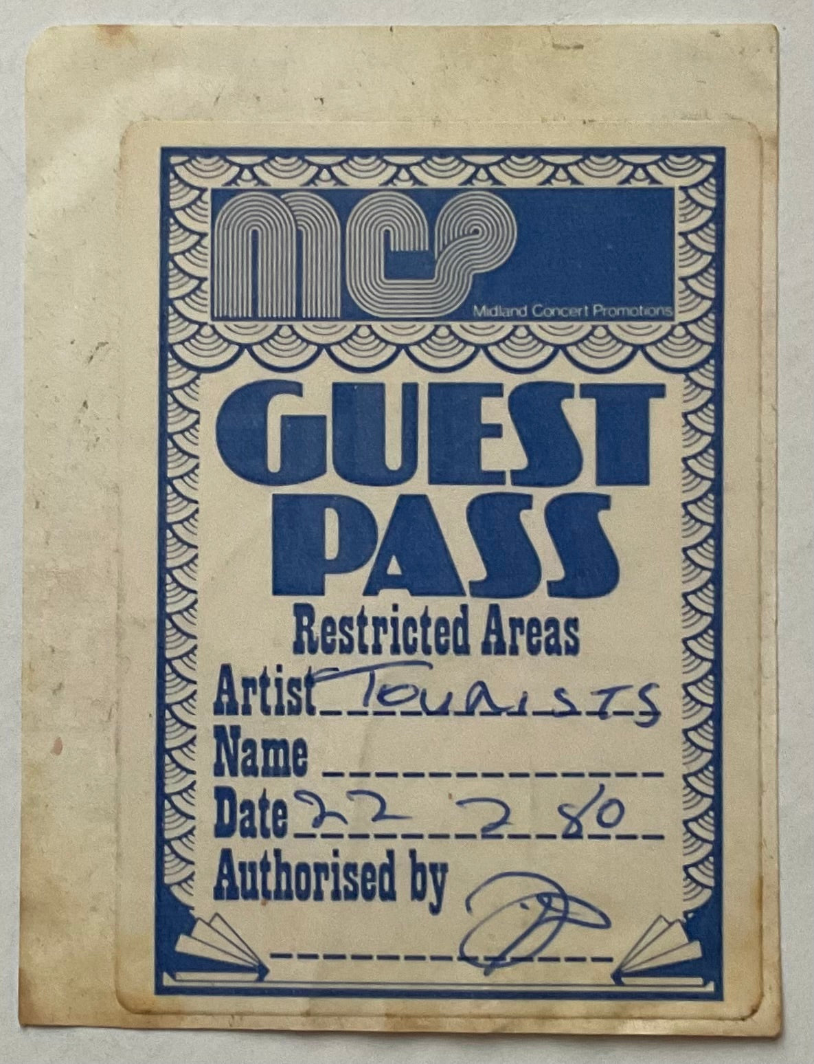 Tourists Original Unused Concert Backstage Pass Ticket Odeon Theatre Edinburgh 22nd Feb 1980