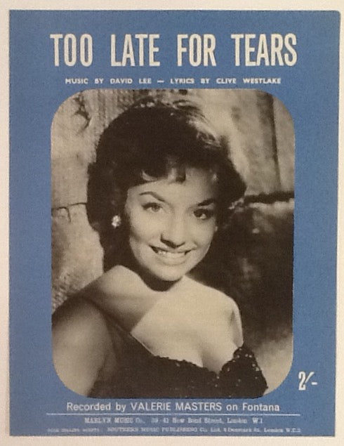Valerie Masters Too Late For Tears Original Mint Sheet Music 1961