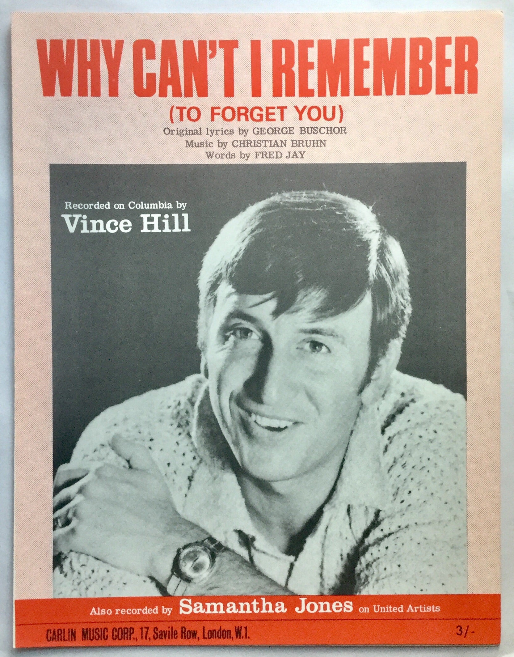 Vince Hill Why Can’t I Remember Original Mint NOS Sheet Music 1966