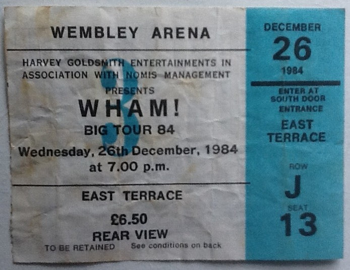 Wham! Original Used Concert Ticket Wembley Arena London 1984