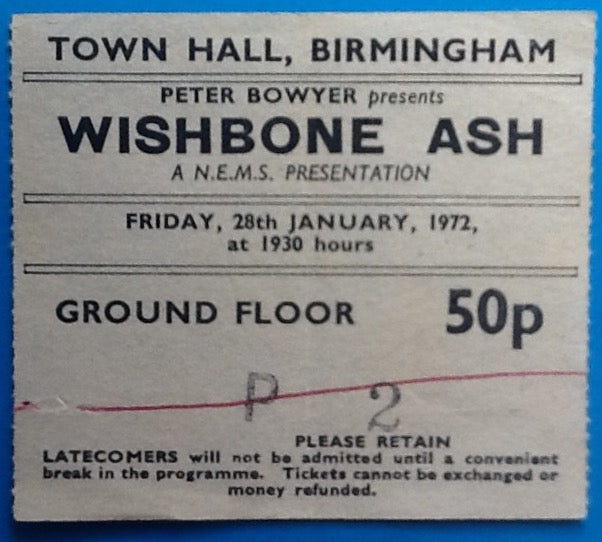 Wishbone Ash Original Used Concert Ticket Birmingham 28th Jan 1972