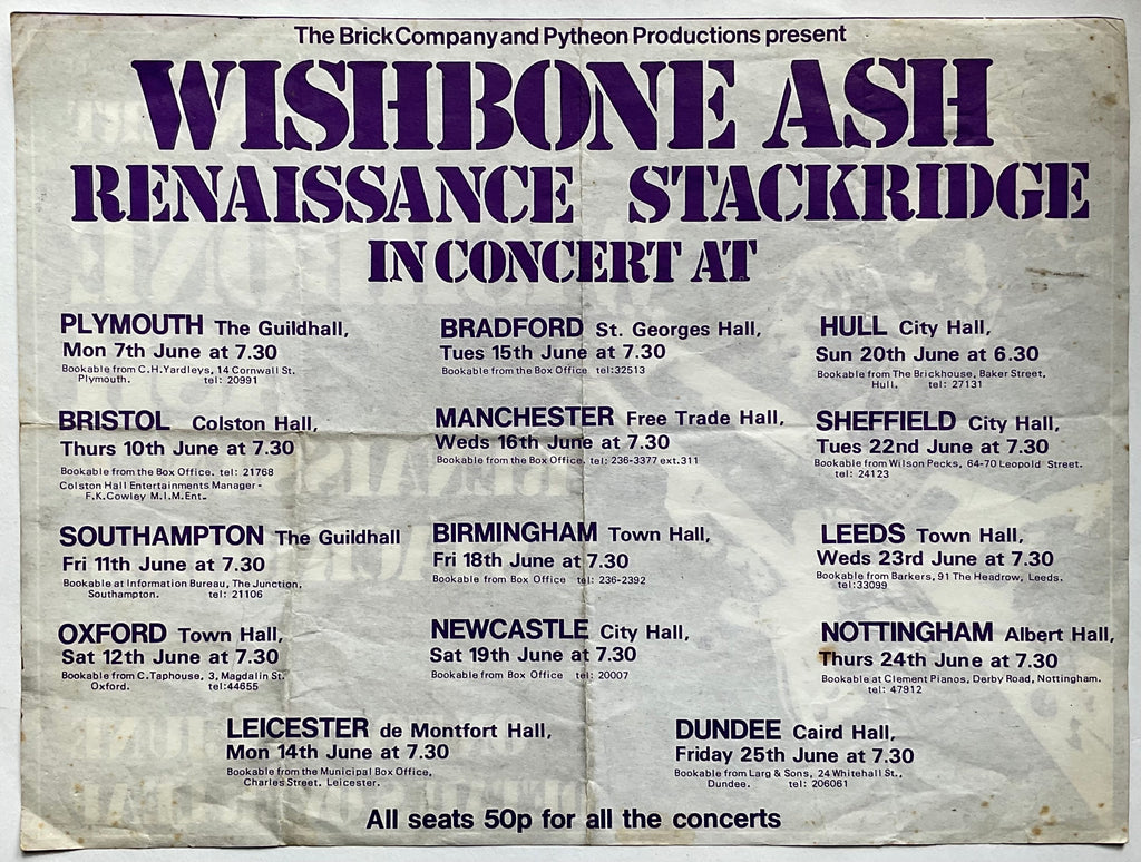 Wishbone Ash Renaissance Original Concert Handbill Flyer U.K. Tour Jun 1971