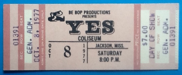 Yes Original Unused Concert Ticket Jackson Mississippi 1977