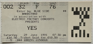 Yes Original Used Concert Ticket Wembley Arena London 29th Jun 1991